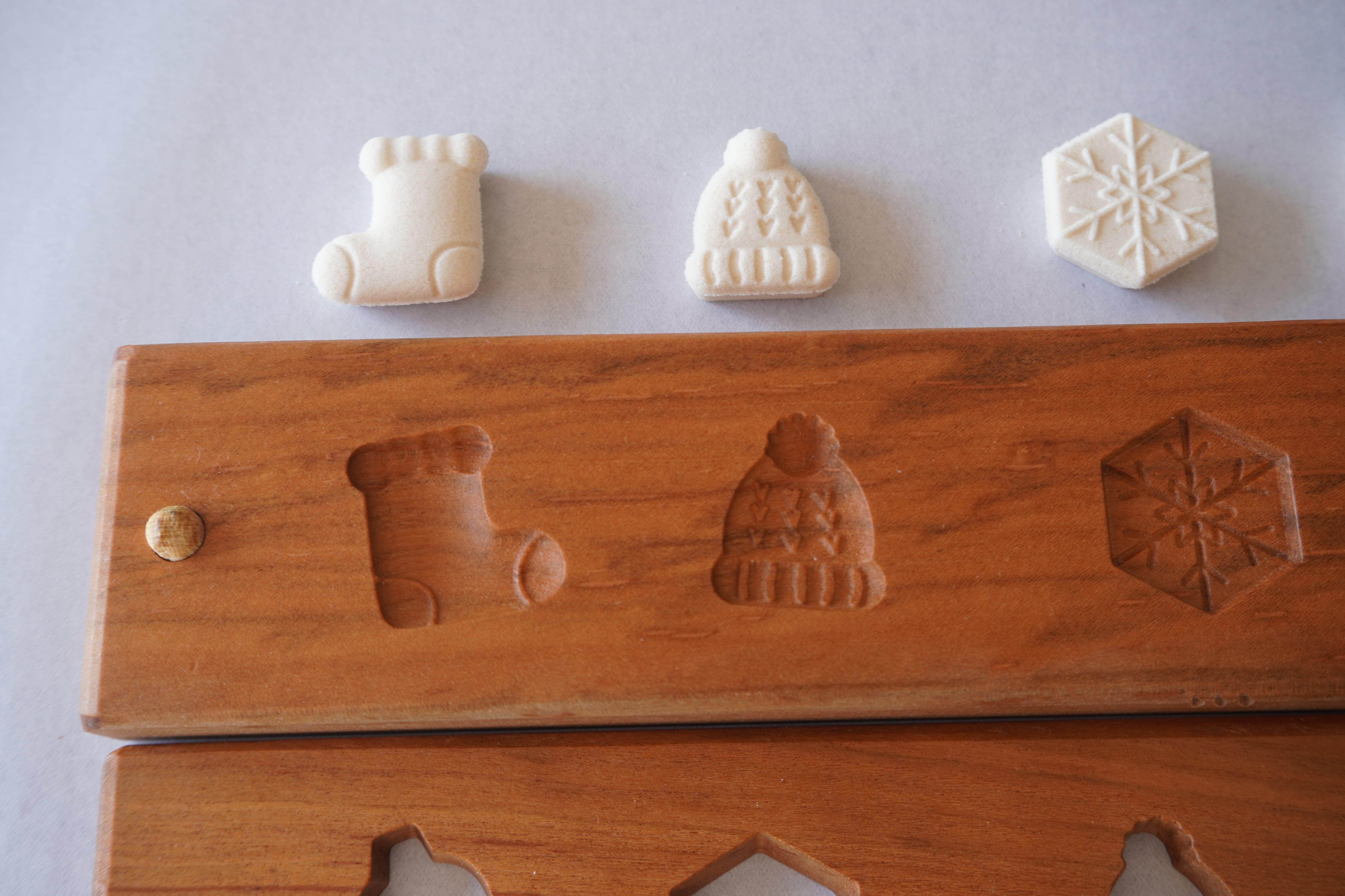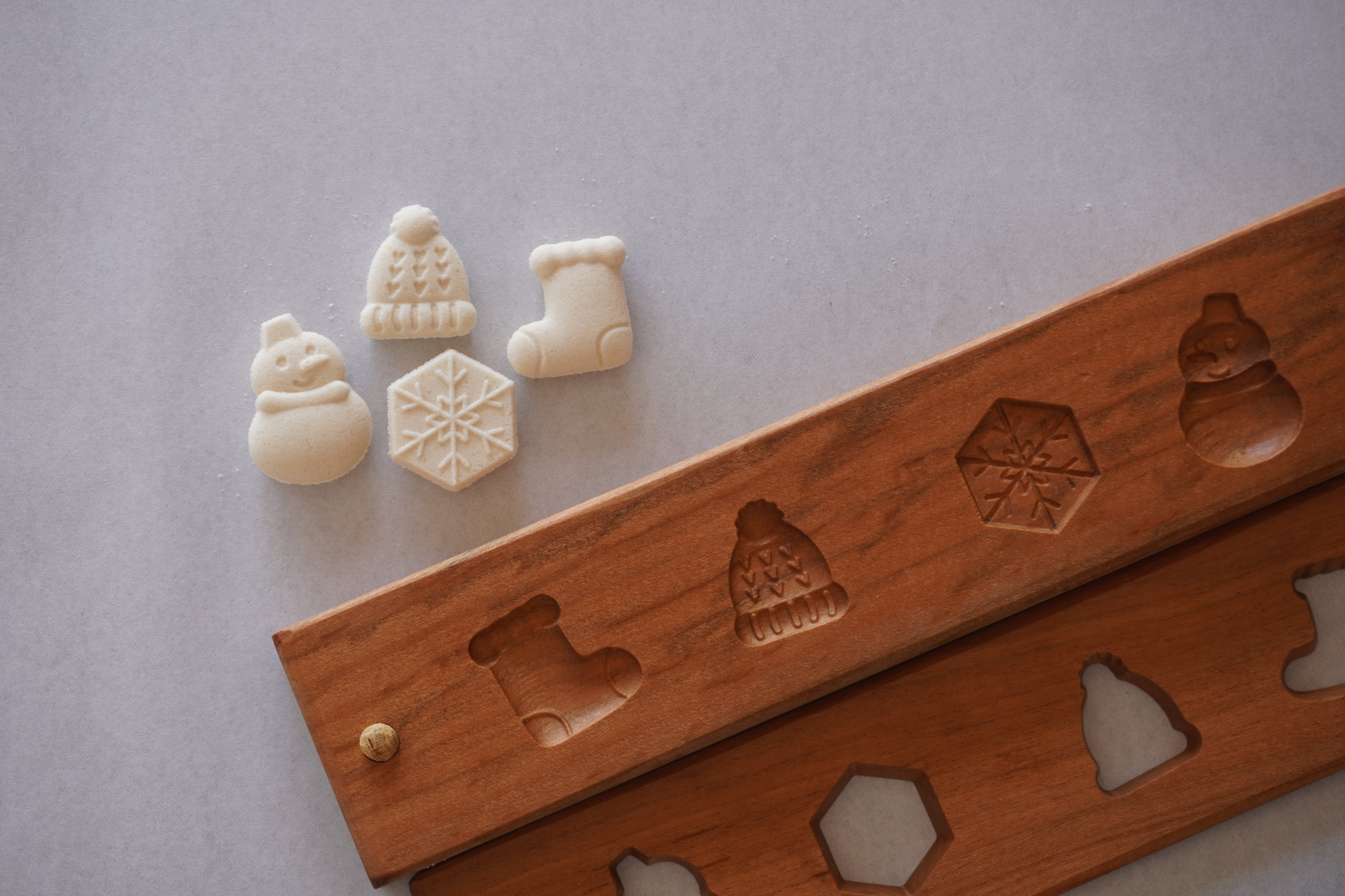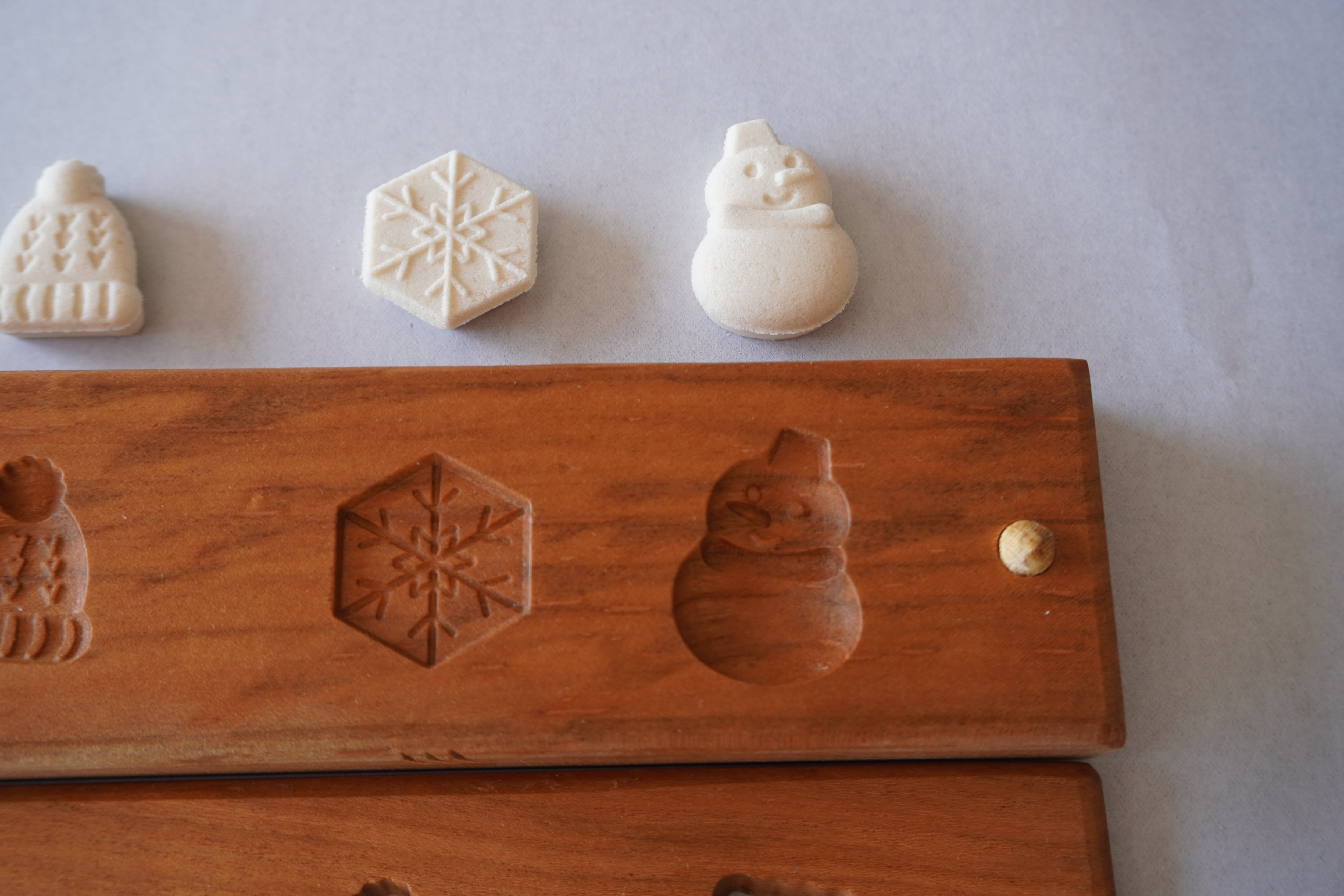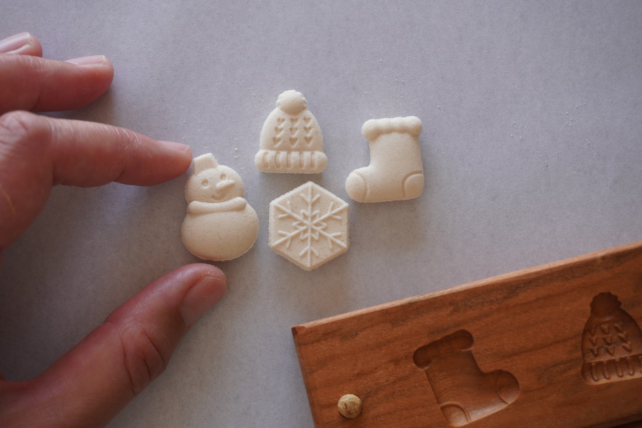 お干菓子がきちんと抜けるよう製作後に全て確認しておりますが、模様が細かいものは材料の配合により抜けにくい場合がございます。