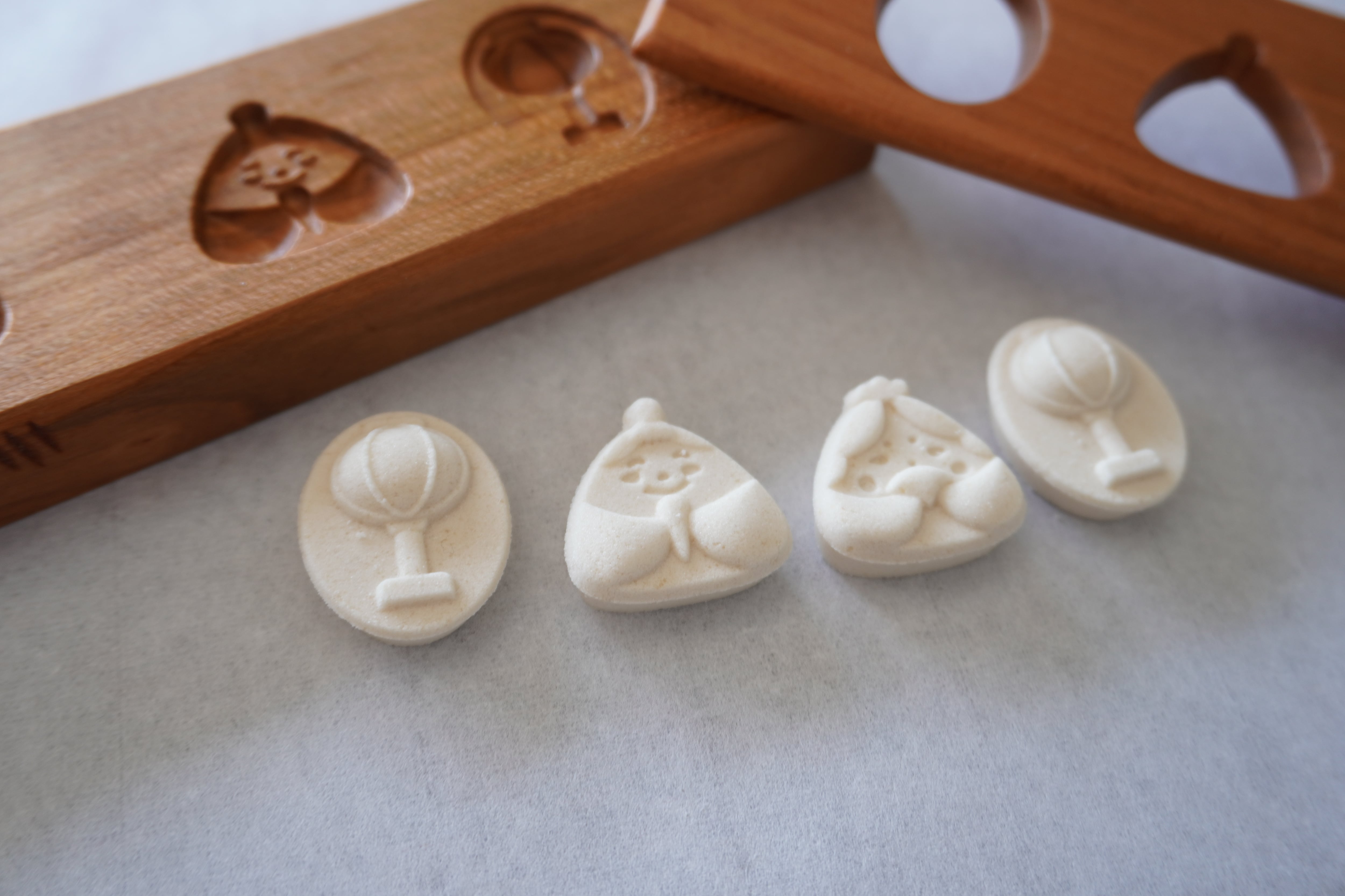 お干菓子がきちんと抜けるよう製作後に全て確認しておりますが、模様が細かいものは材料の配合により抜けにくい場合がございます。