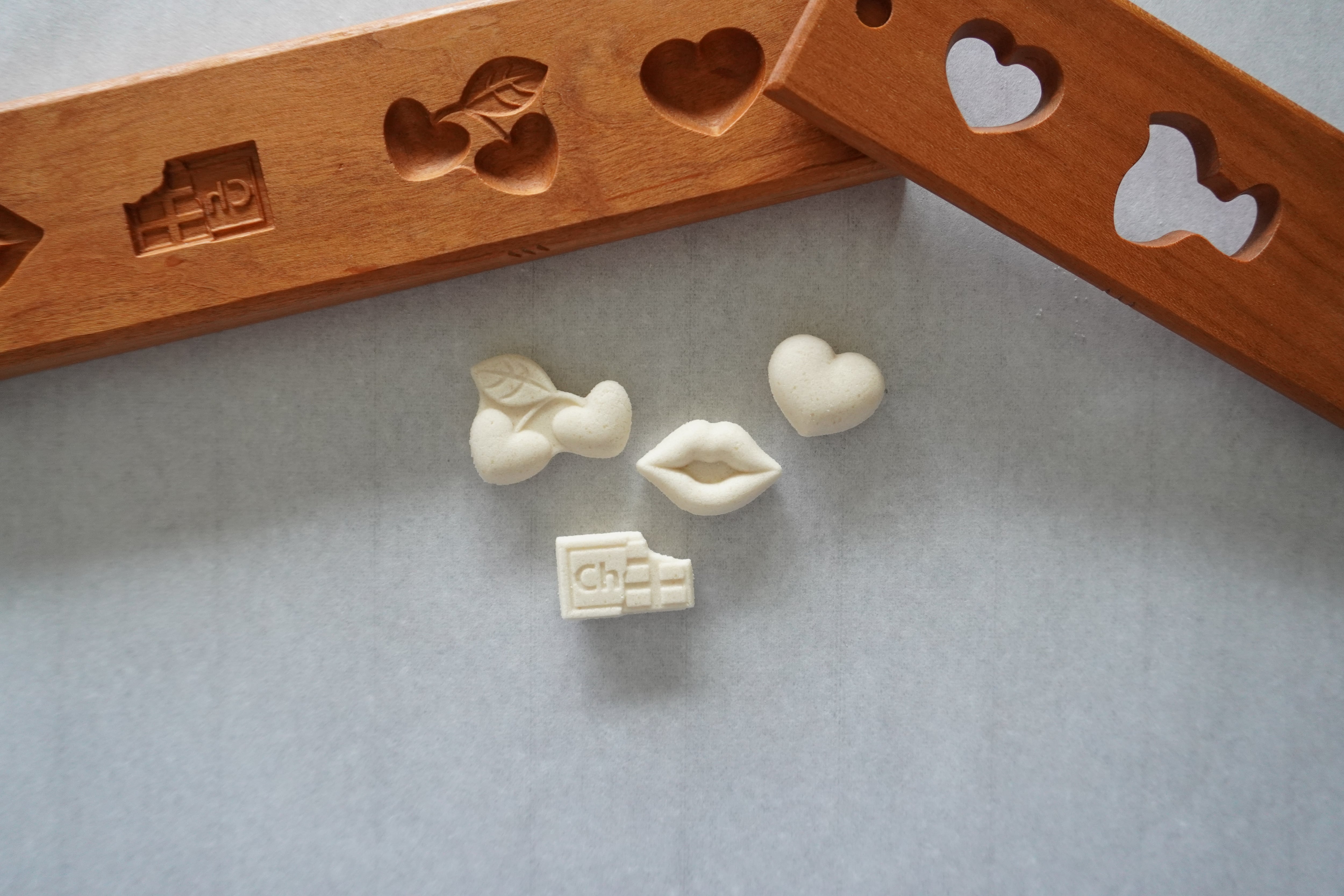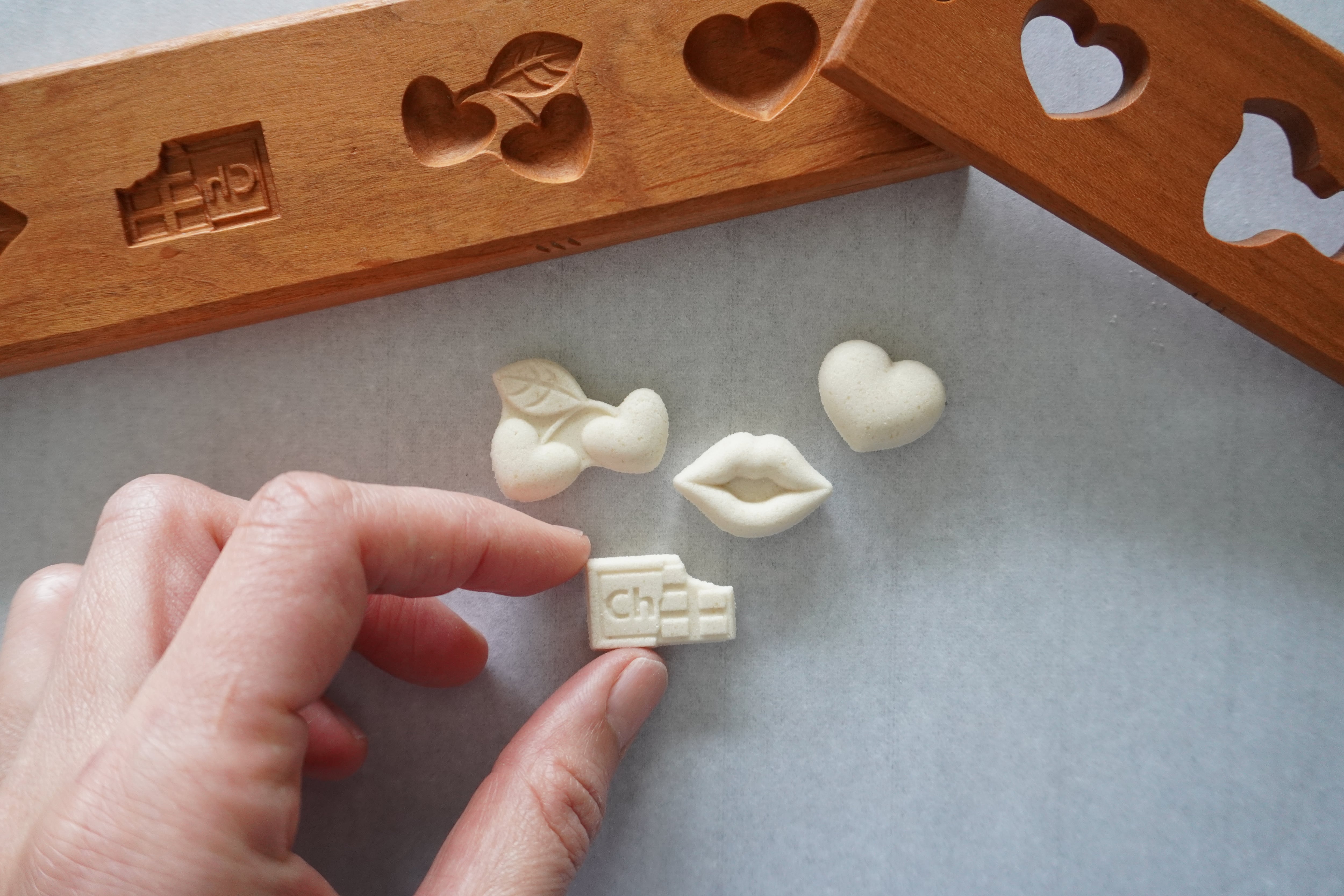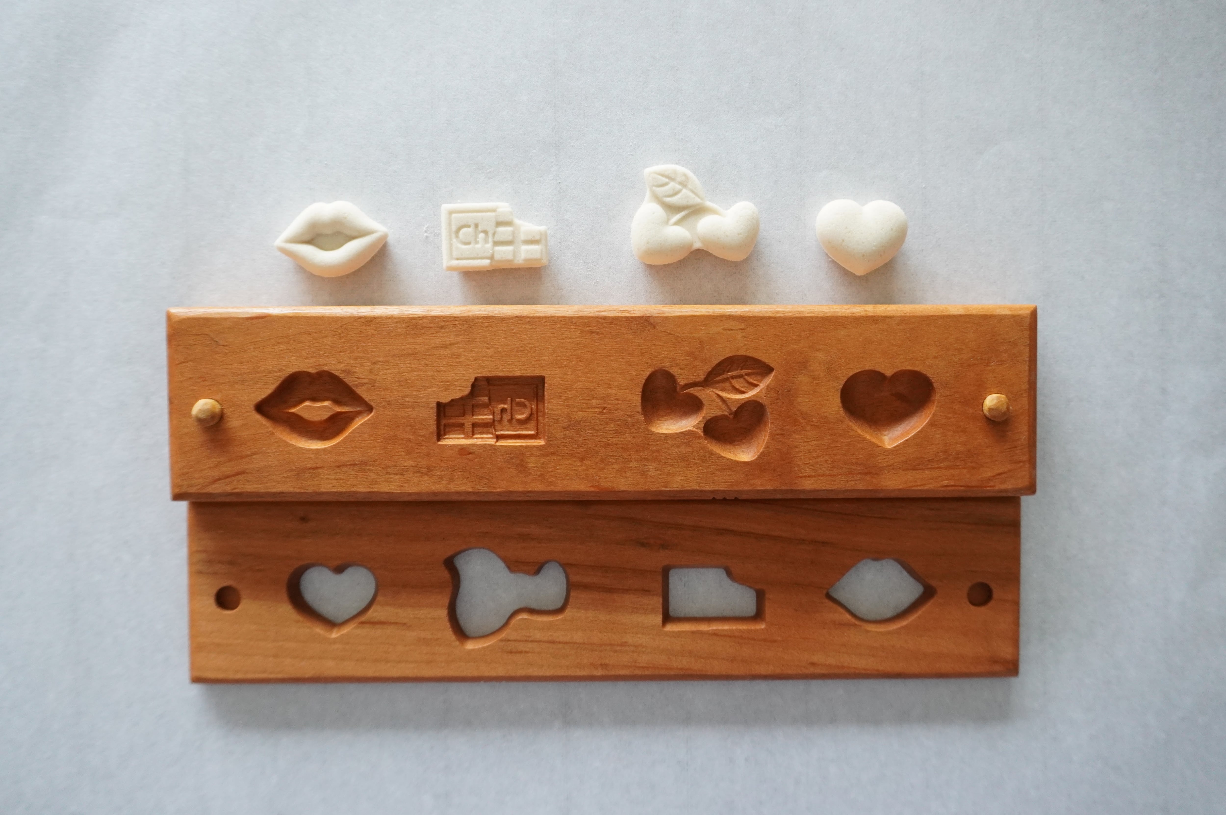 お干菓子がきちんと抜けるよう製作後に全て確認しておりますが、模様が細かいものは材料の配合により抜けにくい場合がございます。