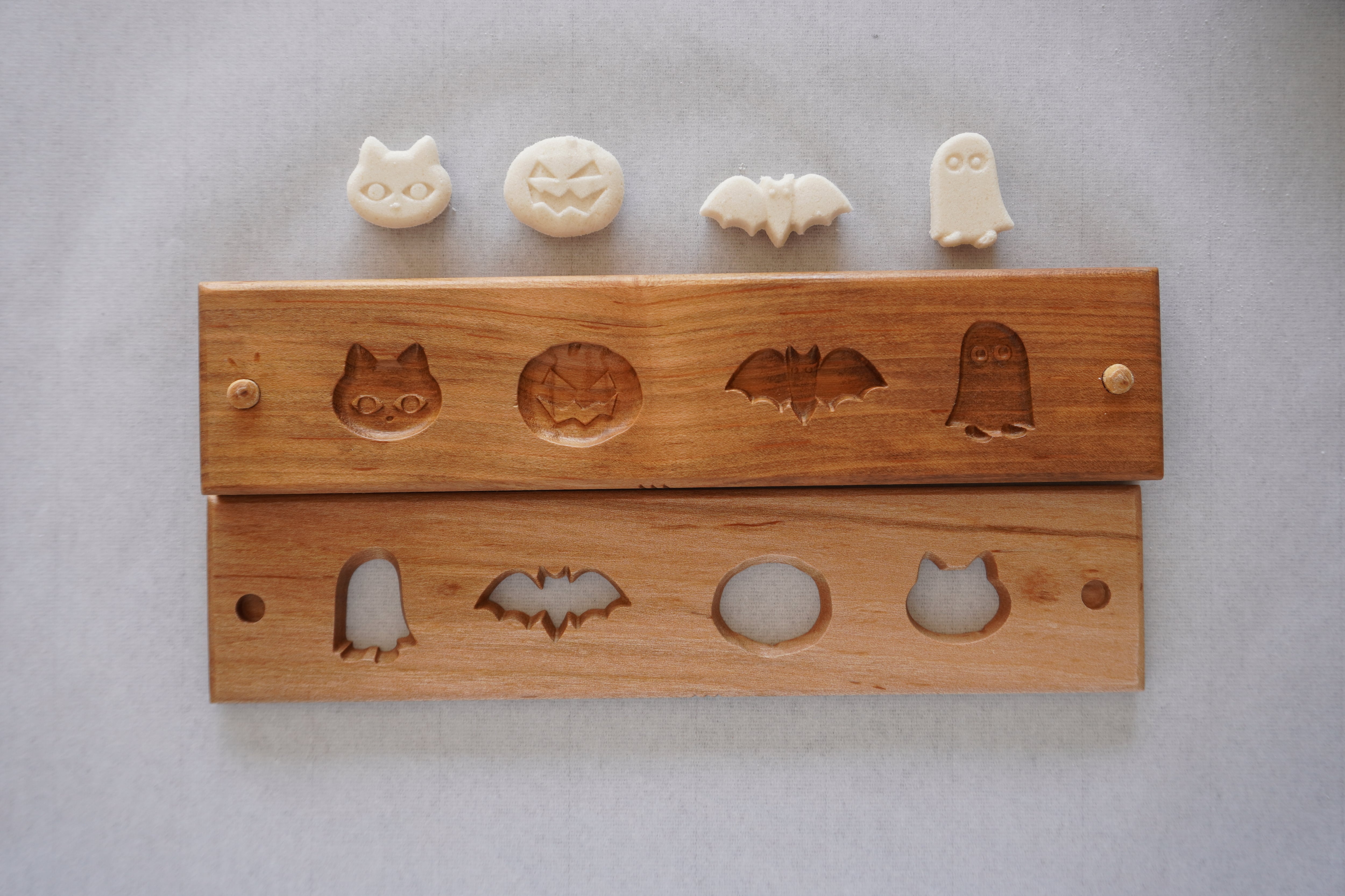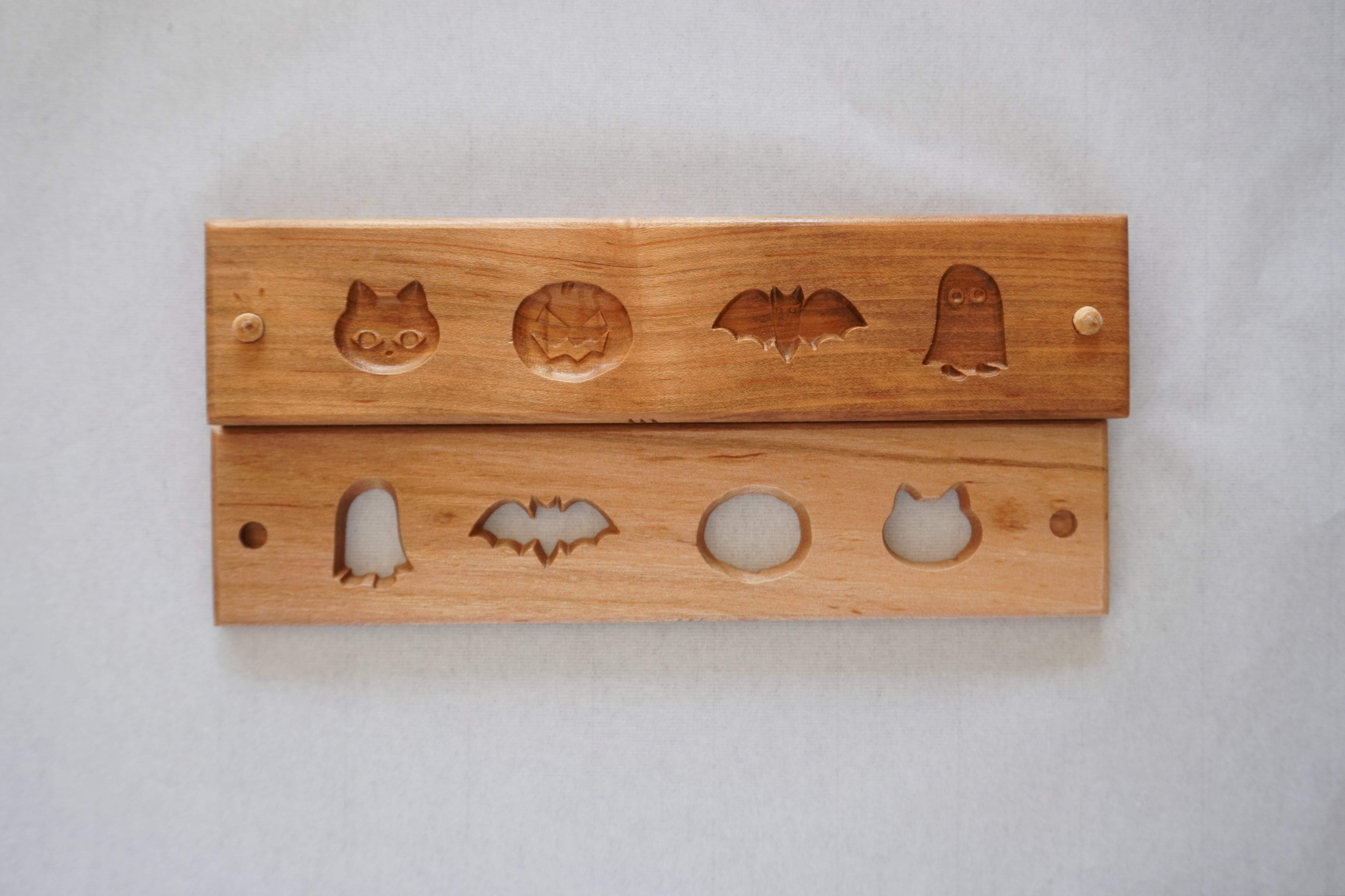 ネコ・カボチャ・コウモリ ・オバケのHalloween模様の木型です。