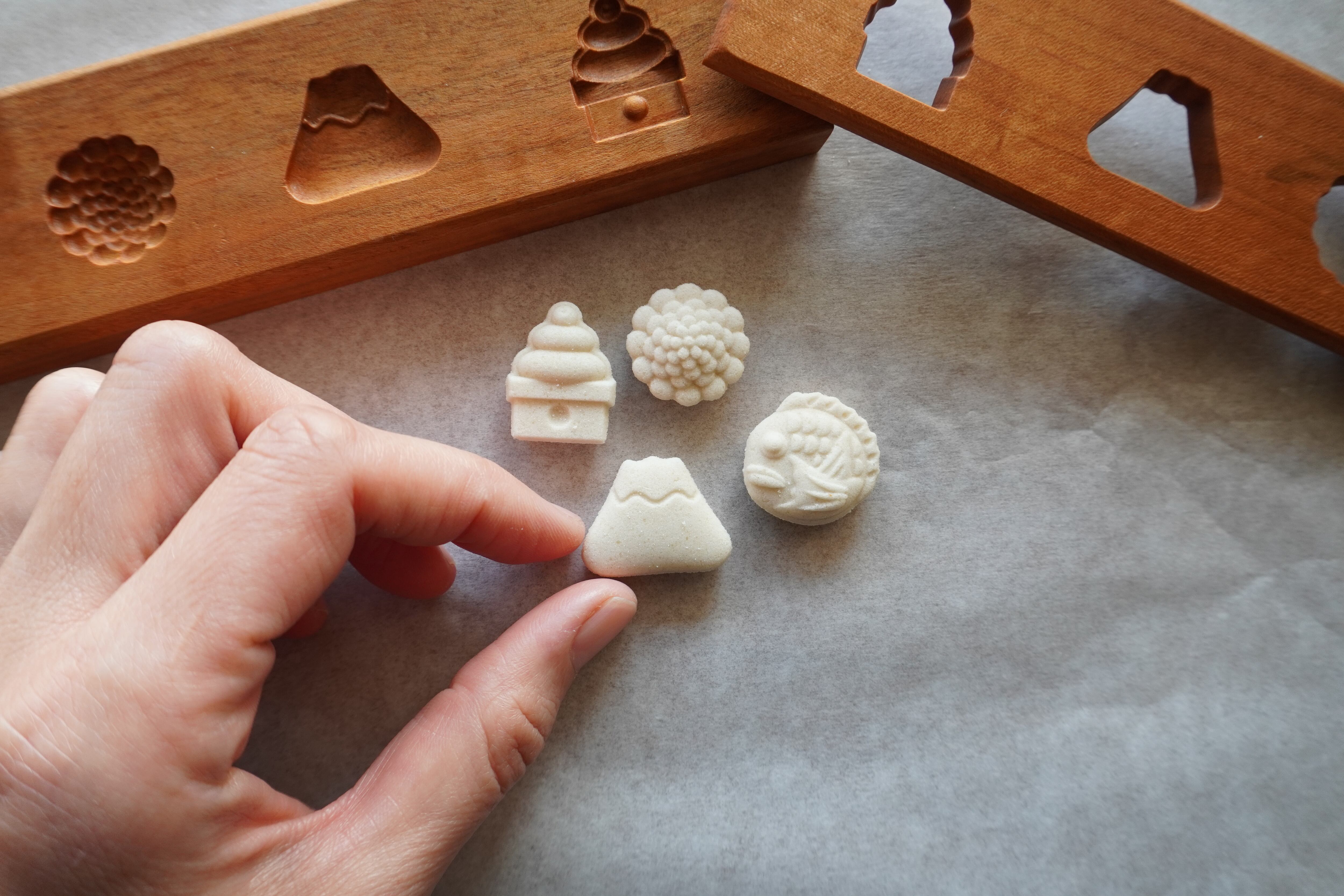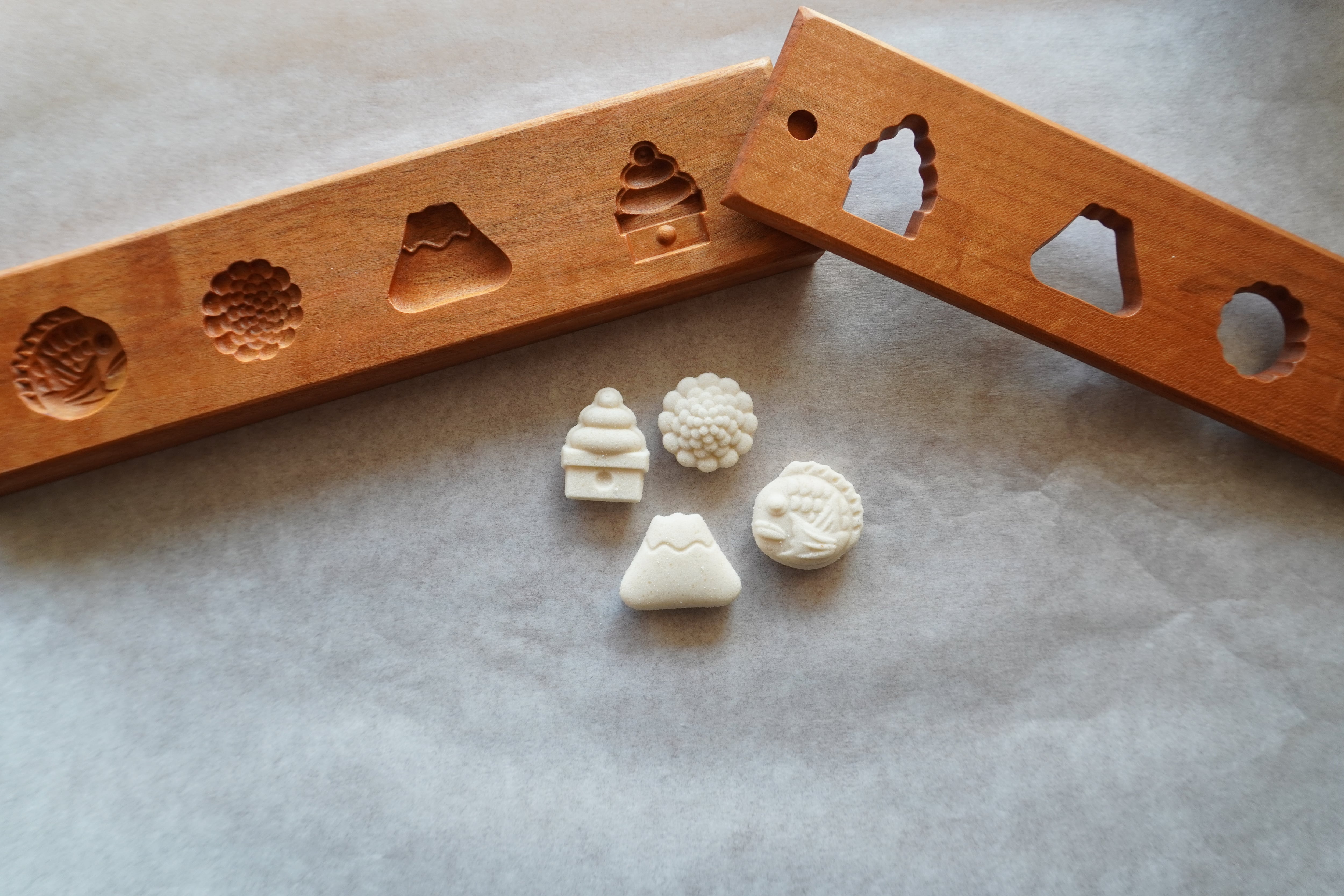 お干菓子が全て抜けるよう製作後に全て確認しておりますが、模様が細かいものは材料の配合により抜けにくい場合がございます。